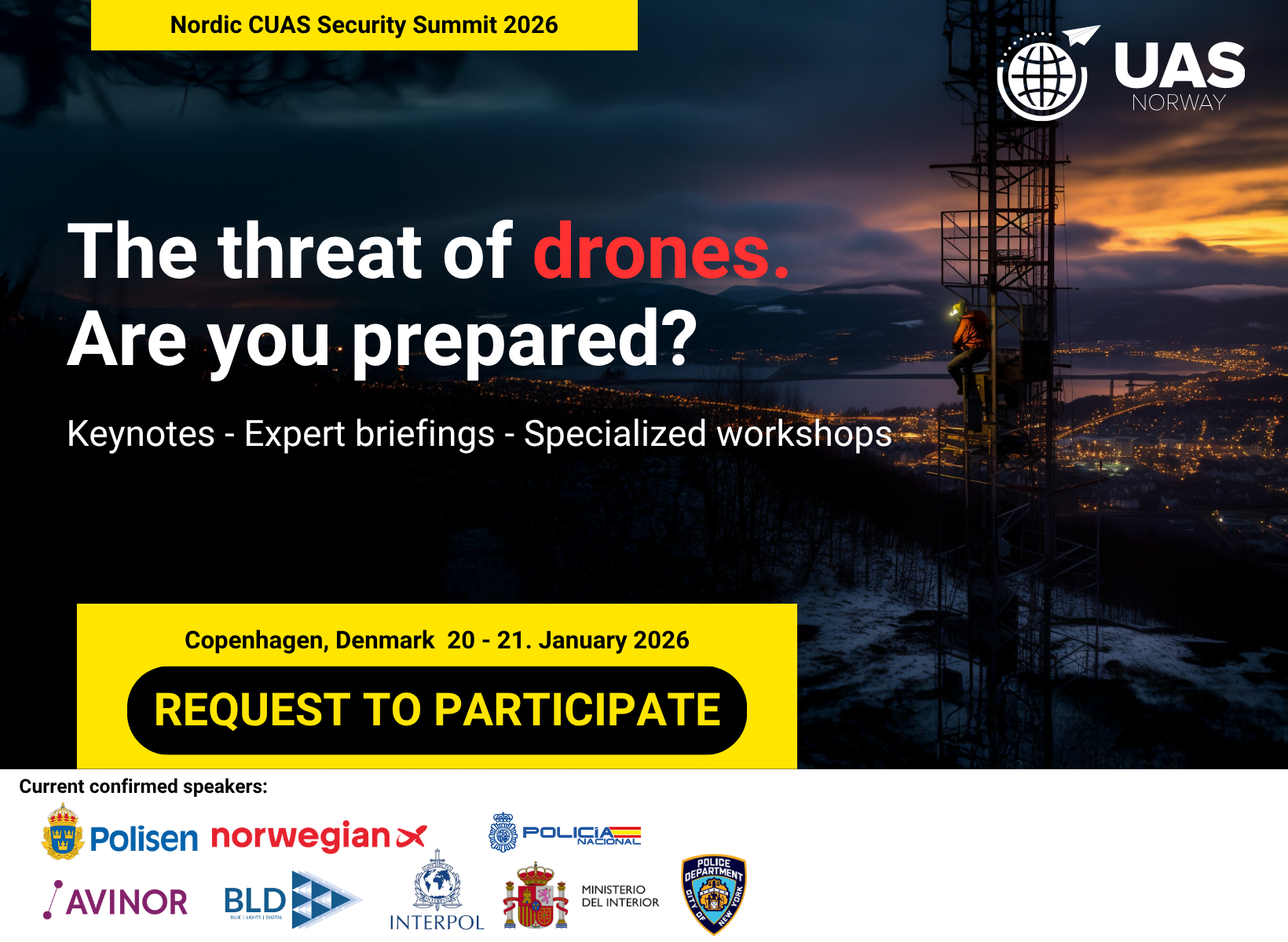 The CUAS Security Summit 2026 in Copenhagen (January 2026) is a closed, invitation-only event hosted by UAS Norway, bringing together leading experts, public agencies, infrastructure operators, and technology providers to explore how knowledge of the low-altitude airspace can both protect society and unlock the full potential of drones for legitimate, beneficial use.