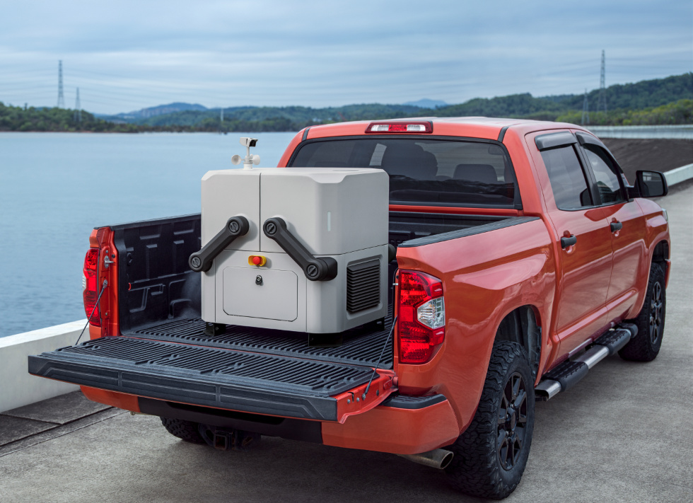 Slik ser DJI Dock ut når den er lukket. Dronen inne i boksen skal være svært godt beskyttet mot vær og vind, ifølge produsenten. Den skal være operativ i temperaturer fra minus 30 til pluss 50 grader. Foto: DJI